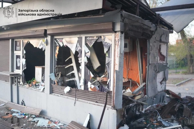 У Запоріжжі обстріл пошкодив автостоянку, підприємство, зупинку, житлові будинки та кіоск. Загинула 74-річна продавчиня кіоску.