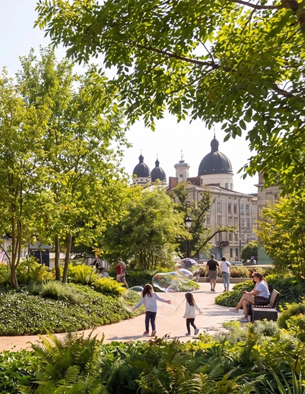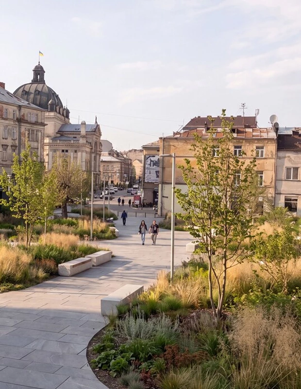 Проєкт передбачає створення великого зеленого простору, який об’єднає кілька невеликих скверів. Тут планують висадити 245 нових дерев і зробити більше озеленених зон. Дощову воду не відводитимуть у каналізацію, а збиратимуть, щоб живити рослини. Також позначать місця раніше розташованих тут об'єктів історичної спадщини.