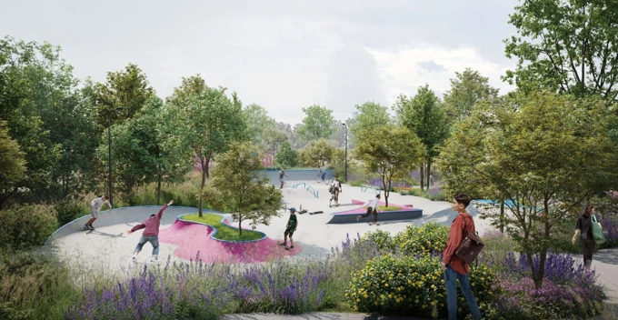 Нова зона відпочинку займатиме площу майже в один гектар. На ній облаштують мультикорт для гри у волейбол, бадмінтон, баскетбол і вуличний футбол. Любителі екстремального спорту отримають бетонний скейт-парк, придатний для катання на скейтах, роликах, трюкових самокатах і велосипедах BMX.