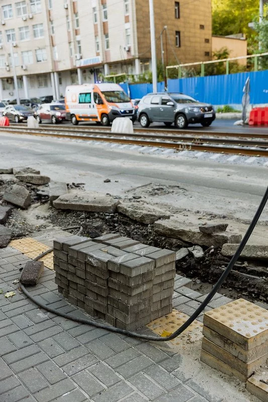 Покриття колій замінюють на асфальт (зараз там плити), що потенційно ще більше заохочуватиме автомобілістів виїжджати на трамвайні шляхи.