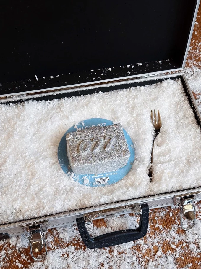 Також у межах партнерства Milk Bar і «Київстар» представили тематичний десерт – тістечко у формі срібного кейса, символу «Місії 077». Усередині – бісквіт зі смородиновим пюре, ванільний мус, білий шоколад і печиво. 50% прибутку від продажу десерту перерахують на підтримку збору.