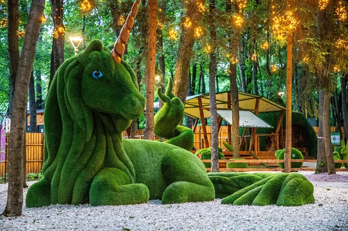 - Диво Ліс із понад сотнею казкових зелених фігур, що створюють маршрут, яким можна не лише гуляти, а й взаємодіяти – на всі дозволено залазити.