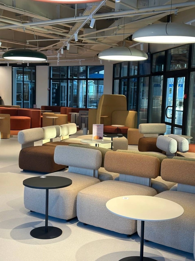 • Для роботи та відпочинку. У лаунжі доступний високошвидкісний Wi-Fi та 21 розетка для зарядки ноутбуків, телефонів та інших пристроїв. Також тут є зручні місця для роботи та відпочинку. Для ділових зустрічей передбачили переговорну кімнату.