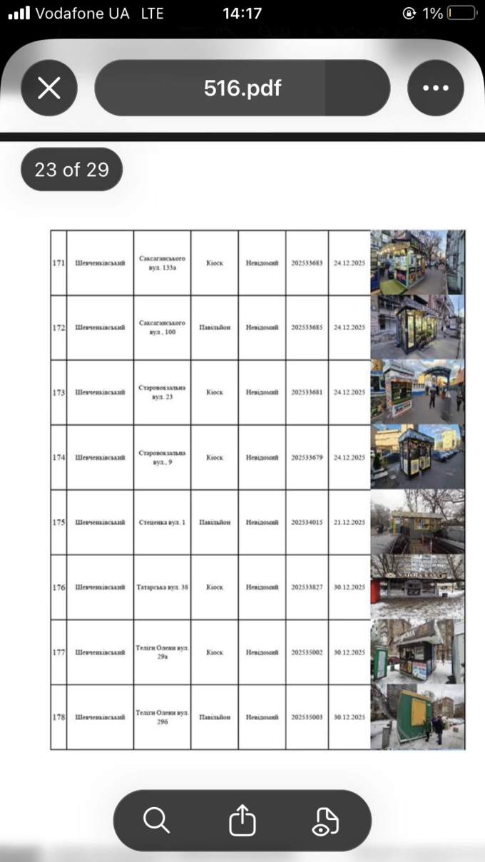 За даними департаменту, приписи не виконали, тому 12 і 14 січня 2026 року КП «Київблагоустрій» отримало доручення від департаменту територіального контролю на демонтаж цих МАФів.