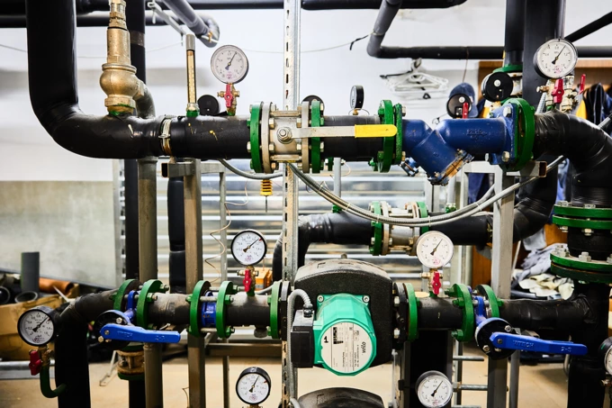 Центральне опалення, гаряча й холодна вода. Насоси подають воду на верхні поверхи.