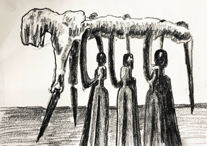 Кромлех – це коло чи кілька кіл із каменів, вертикально поставлених у землю. Так назвав своє дослідження Олександр Мелешко. Страх, що він висловлює, ніби перестає бути абстракцією й стає тілом, з яким можна взаємодіяти, описують організатори виставки. Також цей страх перестає бути суто індивідуальним і проявляється у спільноті як повторення одних і тих самих сюжетів – страх втратити, страх говорити, страх пам’ятати.