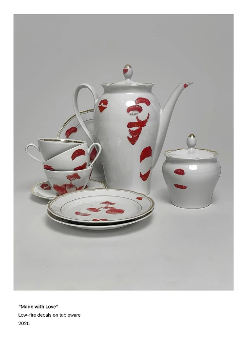 На першій своїй виставці «Зроблено з любов’ю», що відбулася в львівському просторі «Товари з Європи», авторка розмістила керамічні туфлі й чобітки. Та далі виявилося, що все це – надзвичайно маленькі мешти й більшість із них лише на праву ногу. Художниця віджартувалася тим, що все, що вона робить, і все, що вона любить – грішне, і представлене взуття теж, передусім для розпусниць.