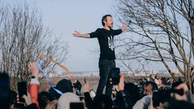 Святослав Вакарчук на спонтанному концерті в Києві. Кадр із фільму