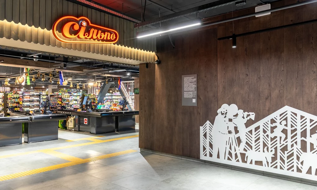 До того ж це не проєкт суто декоративного характеру: тут є медіамистецтво, мозаїки, живопис, предмети етнографії, графічні й декоративні роботи, і всі вони створені спеціально для простору та під моїм кураторством. Біля входу в супермаркет мозаїка за мотивами оригінального постера Георгія Якутовича, який він створив для фільму «Тіні забутих предків». Цю мозаїку виклали студенти Академії Бойчука, а їхнім керівником був Андрій Дудченко. Над ілюстрованими портретами недалеко від кас працював художник Олег Грищенко та клуб ілюстраторів Pictoric.