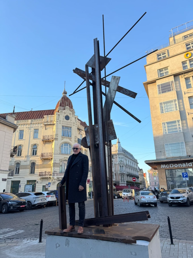 Георг Вольф біля власної роботи «Давид» на проспекті Шевченка