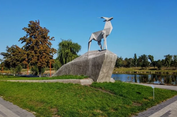 У центрі проєкту «Гарантії безпеки» скульптура Кадирової «Олень» із серії «Оригамі», яку у 2019 році встановили в Покровську у «Парку «Ювілейний»