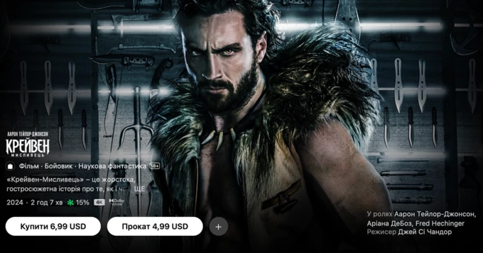 Фільм «Крейвен» за участі Юрія Колокольнікова можна придбати на Apple TV. Скриншот Віледжа