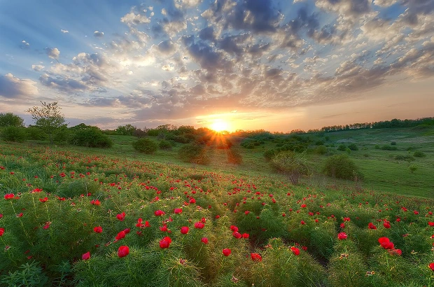 Цвітіння воронців у ботанічному заказнику «Гектова Балка» на заході сонця, Донецька область. Олександр Рижков