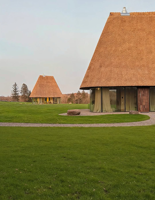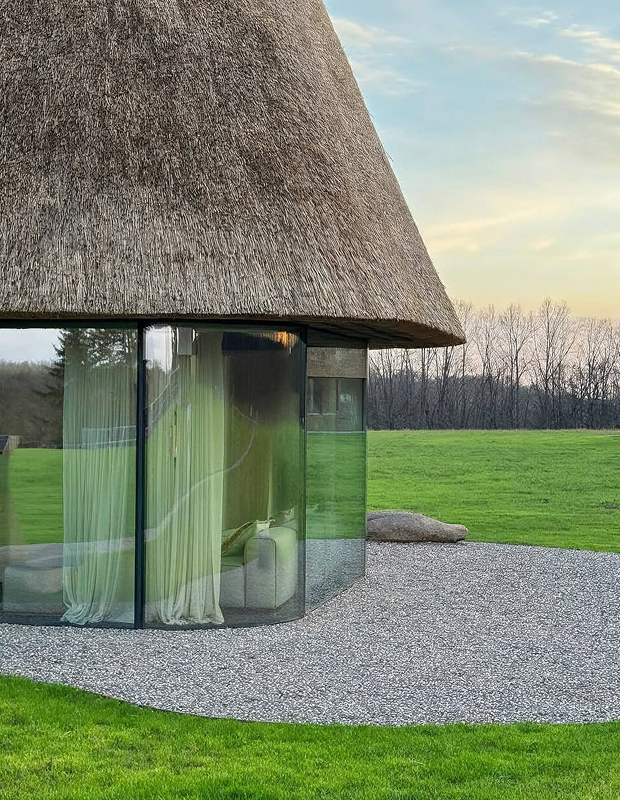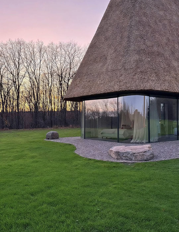 Це сучасні гостьові будинки для ментального відновлення, зазначили в команді. Ландшафт тут став частиною простору. У проєкті поєднали природні матеріали, прості форми й прозорі елементи, щоб «зберегти душу українського села й подати її мовою сучасного дизайну», – кажуть в YOD Group.