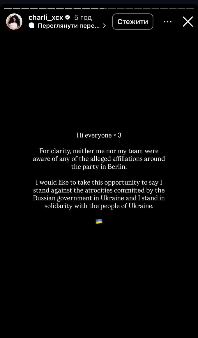 Афтерпаті з Charli XCX у Берліні: співачка «не знала про зв'язки з росіянами»