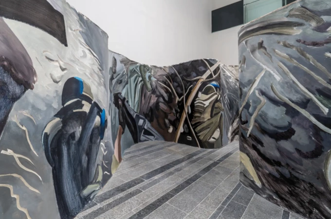 Це друга роботи художниці, представлена на київському вокзалі. Нова інсталяція перебуває на межі живопису та скульптури. Це 30-метрове полотно у формі траншеї, під час огляду якого глядачі опиняються всередині вузьких проходів, що нагадують «окоп».