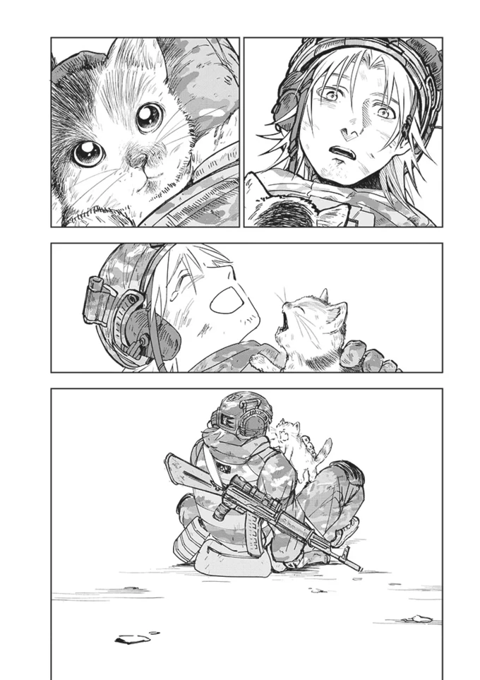 Також у манзі є історія дівчини Альони, яка пережила російську окупацію Херсона. Вона розповідає про насильство російських військових над цивільними. Ще одна історія – про дитину з Маріуполя Матю. У ній є сцена із закривавленим плюшевим коником, натхненна фото після обстрілу вокзалу в Краматорську.