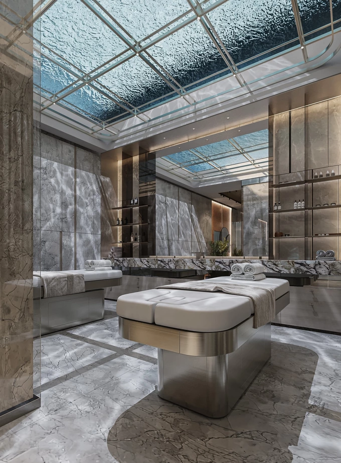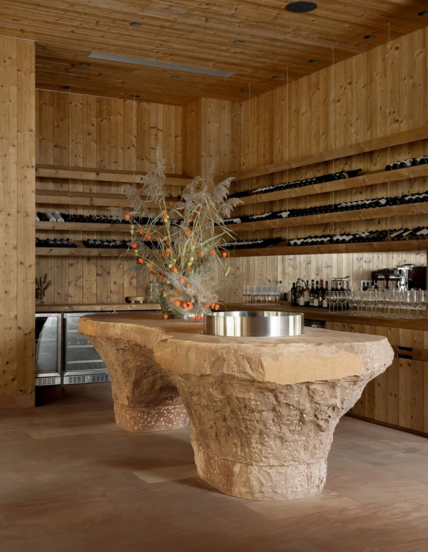 Простір спроєктований для відпочинку та відновлення. Тут використали м’яке освітлення, натуральні матеріали та елементи, що нагадують ліс. Інтер’єр створює комфортну та спокійну атмосферу для релаксу, відновлення і відчуття безпеки.