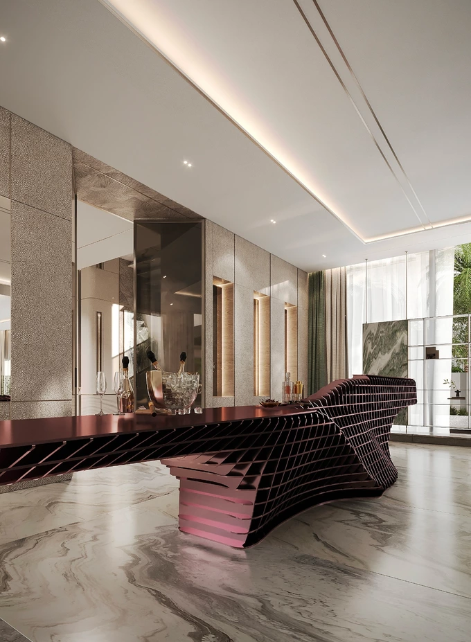 Вілла у Дубаї (ОАЕ) Semira перемогла у категорії Interior Design Villa. Архітектори – Богдан Костельний і Катерина Білoус. Назва відсилає до Семіри – міфічної охоронниці садів.