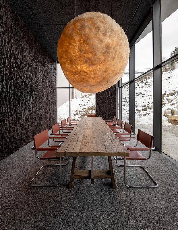 Його також створили у філософії «теруарного дизайну». Mountain Residence нагадує про карпатські міфи, зазначили в команді. Його літній майданчик охороняє скульптура Чугайстра з виноградної лози, у якій живуть птахи.