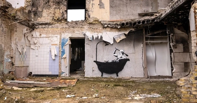 Бенксі створив у Києві й передмісті (Гостомелі, Ірпені, Бородянці) сім графіті. У Київській області обговорювали перенесення цих робіт в окремий музей, присвячений російсько-українській війні. У черні 2024-го графіті «Старий купається у ванній» демонтували разом із верхнім шаром стіни будинку – тепер його планують перенести на іншу основу для збереження і подальшої презентації.