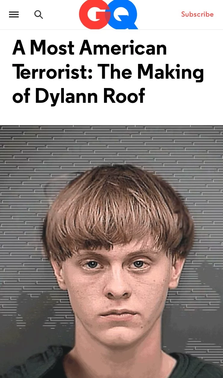 Есеїстка Рейчел Каадзі Ґанса отримала першу Пулітцерівську премію для чоловічого журналу GQ за нарис «Найбільш американський терорист» про неонациста Ділана Руфа, який у 2015 році убив дев’ятьох афроамериканських парафіян методистської церкви у Чарлстоні. Публіцистка спершу хотіла зробити акцент на жертвах терориста, але врешті вирішила зосередитися на тому, як звичайний хлопець перетворився на брутального вбивцю.