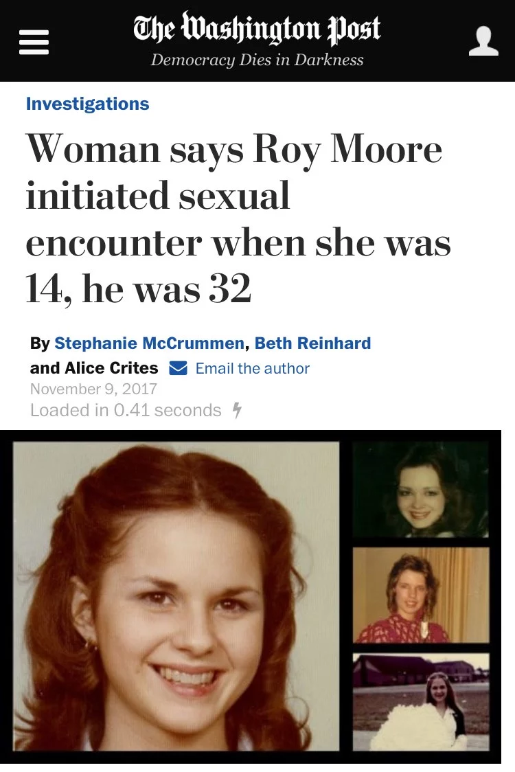 Розслідування The Washington Post звинувачень у розбещенні неповнолітніх коштувало кандидату від Республіканської партії Рою Муру перемоги на додаткових виборах до сенату у штаті Алабама.