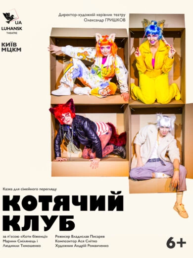 Це казка для сімейного перегляду, яку режисер Владислав Писарев ставить за п’єсою «Коти-біженці» від сучасних драматургинь Марини Смілянець і Людмили Тимошенко. За сюжетом, кошеня Персик загубилося і потрапило до котячого клубу, де живуть коти-біженці.