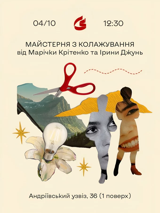 «Різанина» – творчий вечір, де кожен може створити власний колаж «без оцінок та упереджень». Під час сесії учасників супроводжуватимуть ментори Марічка Крітенко й Ірина Джунь. Матеріали для роботи видадуть на місці. Внесок піде на благодійний збір для 429-го окремого полку безпілотних систем «Ахіллес».