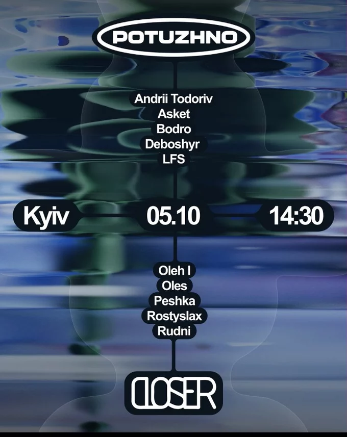 «Потужний» вечір електронної музики збере у Closer музикантів і діджеїв із різних міст України – Чернігова, Івано-Франківська, Києва, Маріуполя, Одеси, Прилук, Харкова та Шостки. Лайнап – Andrii Todoriv, Asket, Bodro, Vladyslav Deboshyr, LFS, Oleh L, Oles, Peshka, Rostyslax і Rudni.
