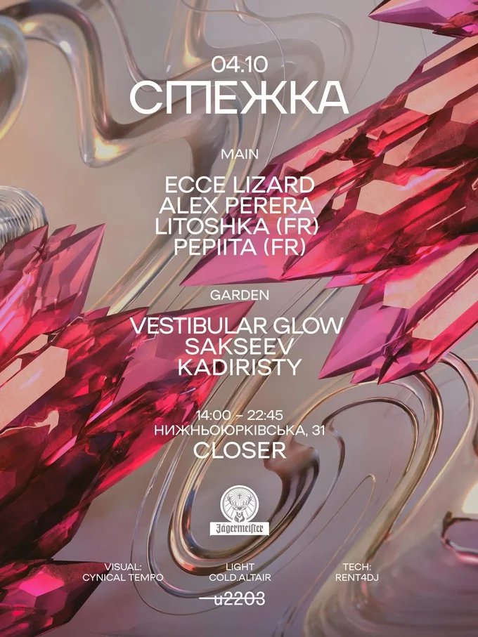«Простір без меж, де серця б’ються в спільному ритмі»: на фестивалі «Стежка» у Closer можна «танцювати, завмирати, бути рішучими та по-дитячому грайливими», кажуть організатори. На двох сценах виступлять українські та французькі діджеї: Еcce Lizard, Alex Perera, Litoshka, Pepita, Vestibular Glow, Sakseev і Kadiristy. Чистий прибуток від заходу направлять на збір військовим.