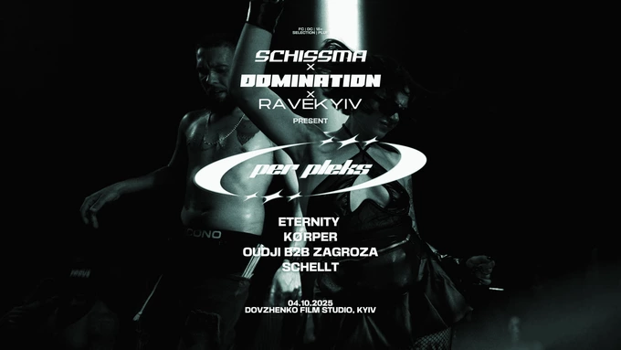 Уперше три лейбли – Schissma, Domination і RaveKyiv – об’єднаються, щоб провести денний рейв у Києві. Хедлайнером стане Per Pleks із Німеччини – техно-артист, що грає «темні» сети. До лайнапу також увійшли Eternity, Kørper, Oudji b2b Zagroza та Schellt. Вперше в Україні виступи транслюватимуть наживо на YouTube-каналі escape.germany.