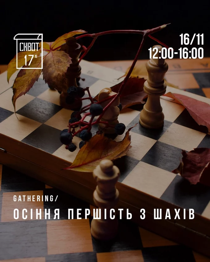 Сезонний шаховий турнір проведуть у Squat 17b. Там можна буде змагатися з Мирославом Крижем – співзасновником Squat 17b, режисером і радіоведучим Ярославом Лодигіним, а також актором Павлом Логвиним. Гроші, зібрані на події, передадуть на обшивку бронею автомобіля HMMWV для батальйону безпілотних систем «Таліон».