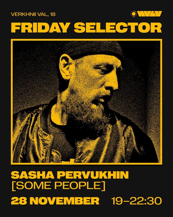 Диджей, продюсер та учасник електронної формації «Тиск» Sasha Pervukhin зіграє в барі «Хвильовий». Артист досліджує різні жанри електронної музики – від британського тех-хаусу кінця 90-х до індустріального брейкбіту.