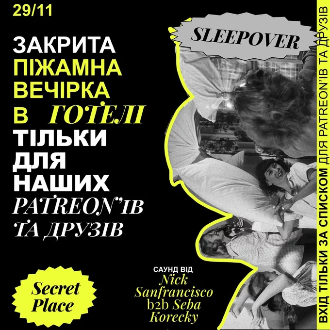 Vertuha проведе закриту піжамну вечірку в готелі тільки для підписників платформи Patreon. На вечірці виступить диско-фанк артист Nick Sanfrancisco з Мілану (Італія).