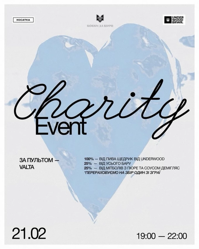 Кафе «Косатка» долучається до збору «Один зі зграї» на потреби бійців батальйону «Вовки Да Вінчі». Протягом вечора гроші збиратимуть на барі та кухні. На збір перераховуватимуть 100% від продажів пива «Щедрик», 25% від усього бару і 25% від мітболів із пюре та соусом демігляс.