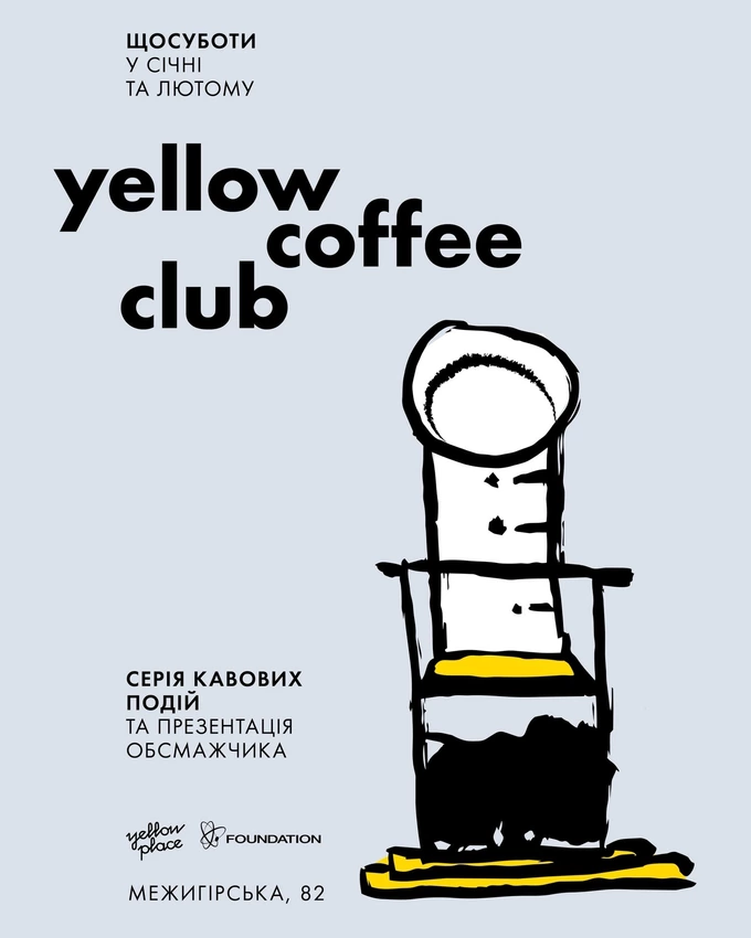 Суботній кавовий клуб Yellow Coffee Club проведуть у гастрохабі Garage. На події можна буде скуштувати спешелті-лоти, які оцінили у високі 85–91 балів Speciality Coffee Association (міжнародна організація, що обʼєднує кавових професіоналів).