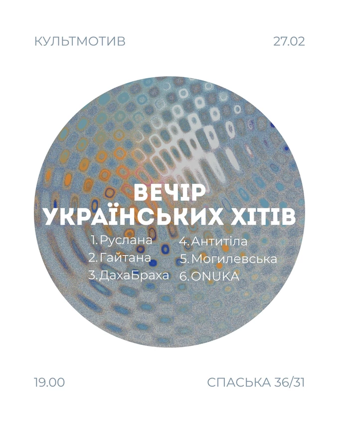 У «КультМотиві» проведуть вечір українських хітів – від Руслани, Гайтани й «ДахаБраха» до «Антитіл» і композицій Onuka.