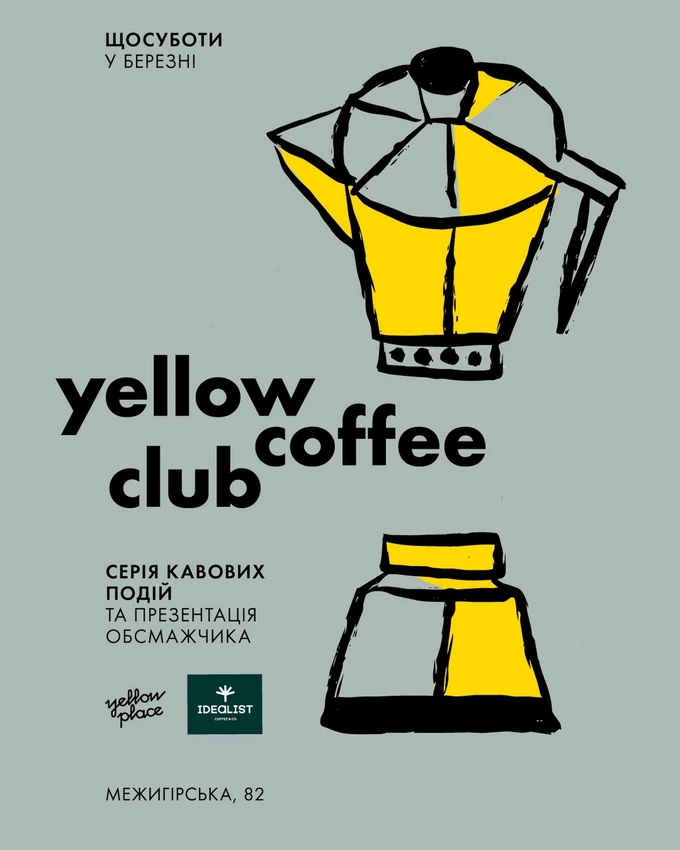 Yellow Coffee Club проведе чергову зустріч кавового клубу на Межигірській разом з Idealist. Будуть лоти, приготовані у воронці та джезві, а також дискусії про те, як змінюється смак кави залежно від способу її приготування.