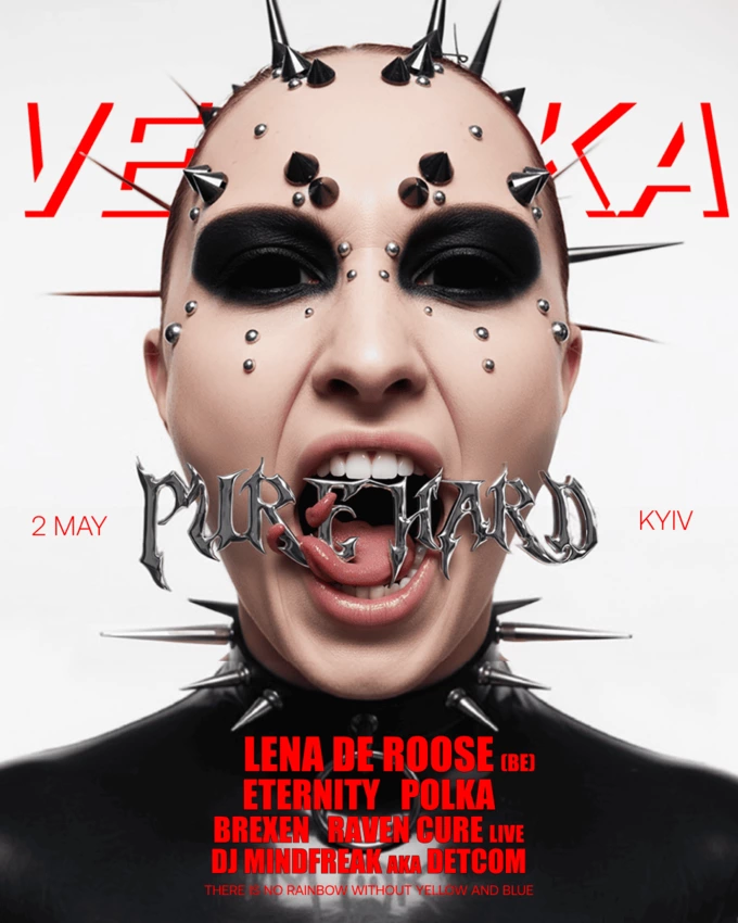 Кураторкою вечірки Pure Hard II від Veselka стане диджейка Polka. У лайнапі бельгійська артистка Lena de Roose, яка зіграє в Києві вперше, а також сети від Brexen, спільний виступ Spalah та Acid Girl, Dj Mindfreak і лайв від Raven Cure. Дрескод: шкіра, латекс, хром і сітка.