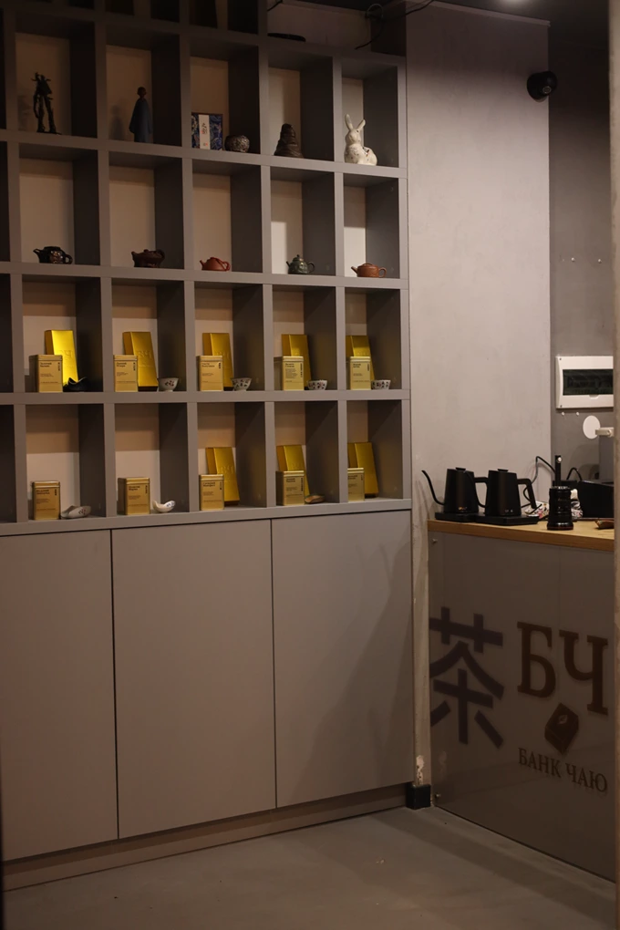 Чайну «Банк Чаю» на вулиці Саксаганського відкрили Анастасія Аверіна, Роман Загорняк та Олександр Переверзев. Анастасія – засновниця комунікаційної агенції Averina, Роман комунікаційник і PR-стратег, а Олександр відповідає за операційні процеси та сервіс. Чай можна випити в закладі або придбати додому. Добором чаїв і концепцією напоїв опікується Роман Загорняк.