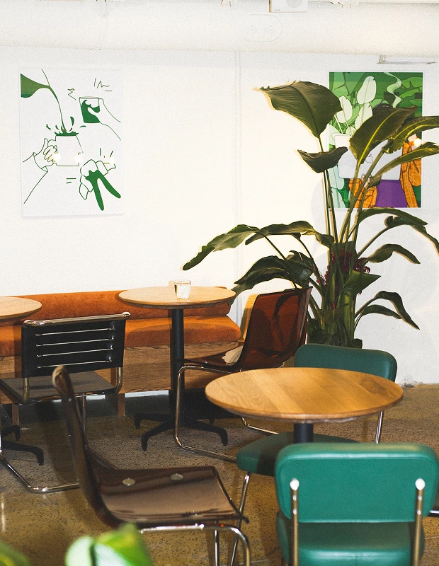Над дизайном працювали Галина Черниш та Єлизавета Воронова. Вони створили простір із натуральними матеріалами – деревом, металом і текстилем, із поєднанням світлих стін і теплих меблів. Seaters розрахований приблизно на 50 гостей.