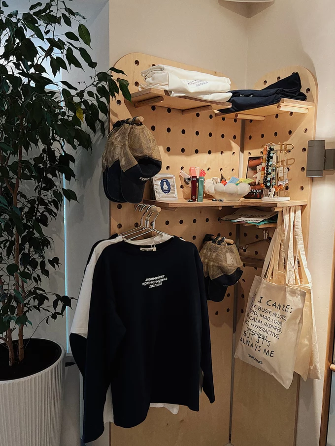 У кав'ярні подають спешелті каву, є бар з натуральним вином та коктейлями, а також маркет мерчу та подарунків від українських крафтових виробників.
