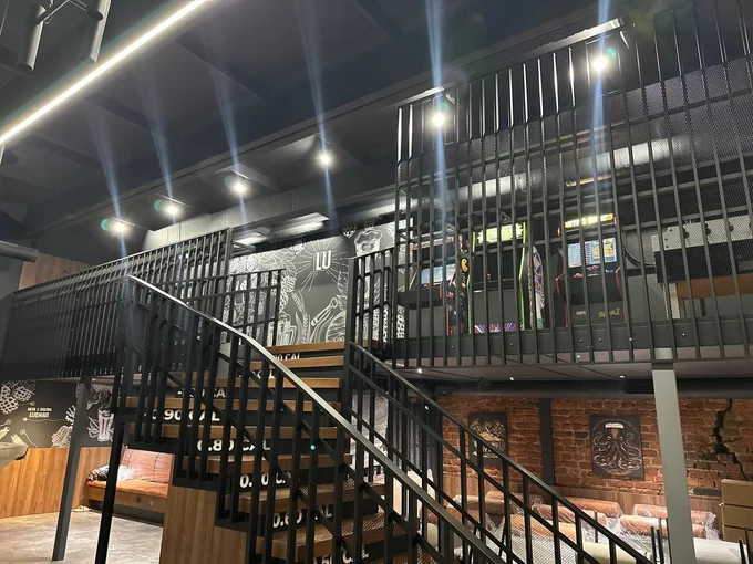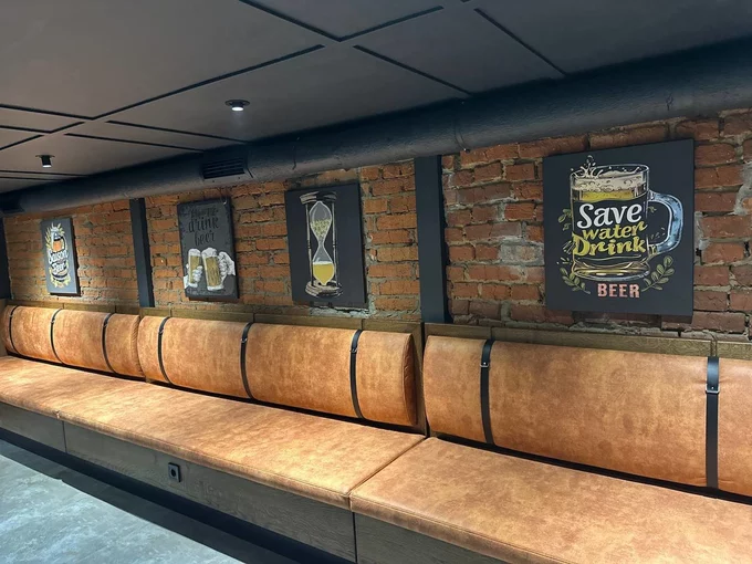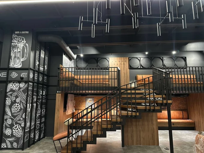 Інтерʼєр розробила луцька дизайнерка Олена Гаврилюк разом із L- Design Agency. У просторі поєднали багато металу, дерева та цегли. Дизайн витриманий у теракотово-чорних кольорах, а деякі стіни розписані вручну, кажуть у команді. Також у ресторані є «фітнес-сходи», скульптури та handmade люстри, які виготовили з понад тисячі пивних пляшок.