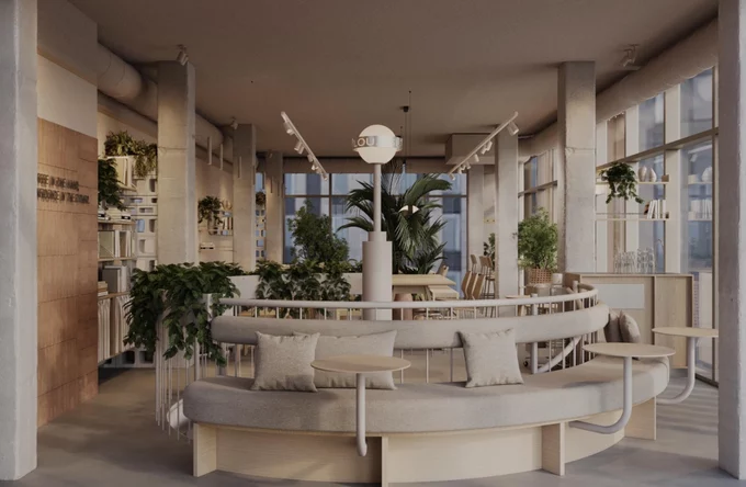 «За філософією Slou в інтер’єрі немає візуального шуму», – кажуть у команді. Однак акцентом простору стане арт від художниць – сестер Фельдман, до оформлення також доєднається студія Specific. В основі інтер’єру – дерево, бетон і метал, що притаманно скандинавському мінімалізму, розказують Віледжу.