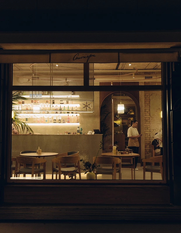 За кухню відповідає бренд-шеф Сергій Грудінін. У меню – хліб на заквасці, булочки з маком і вершкові круасани, а також страви, приготовані на відкритому вогні. Серед інгредієнтів – соняшник, конопля й мак. Шеф-бармен – Ілля Ткачук. Коктейльна карта називається «Коли зорі зійдуть» і базується на локальних продуктах і травах, у винній карті – українські виноробні, а кава – від українських обсмажчиків.
