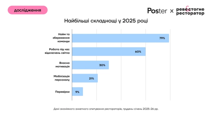 Середній чек у закладах зріс на 17%, а відвідуваність впала на 8%, ідеться в підсумках 2025 року від Poster.