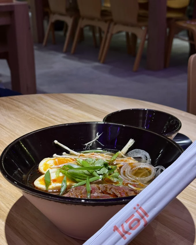 Перша раменна Koji почала працювати у липні на вулиці Угорській у Львові. Дизайн закладу мінімалістичний з плюшевими іграшками в шибарі, а на стіні є напис «Сьорбай. Дихай. Будь», який присвячений естетиці смакування раменом та підтримці.