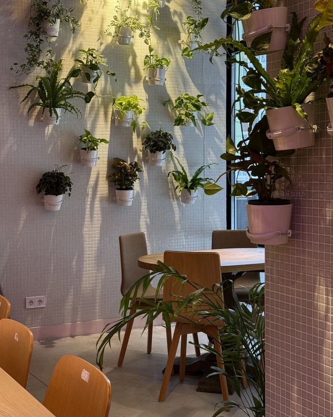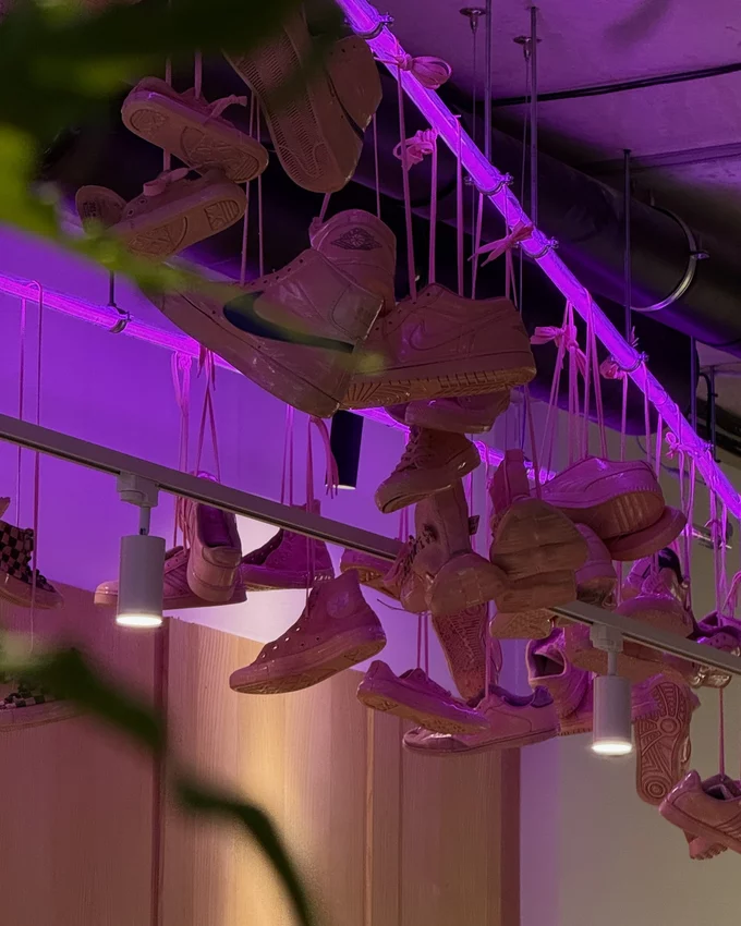 Над дизайном закладу працював митець та мистецтвознавець Влодко Костирко. В інтер'єрі Koji є рожеві акценти, шахи на стіні, кеди на неонових трубах, баскетбольні кільця з намистинами та багато зелені.