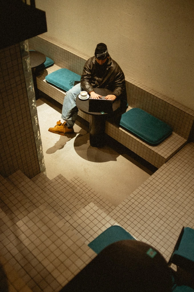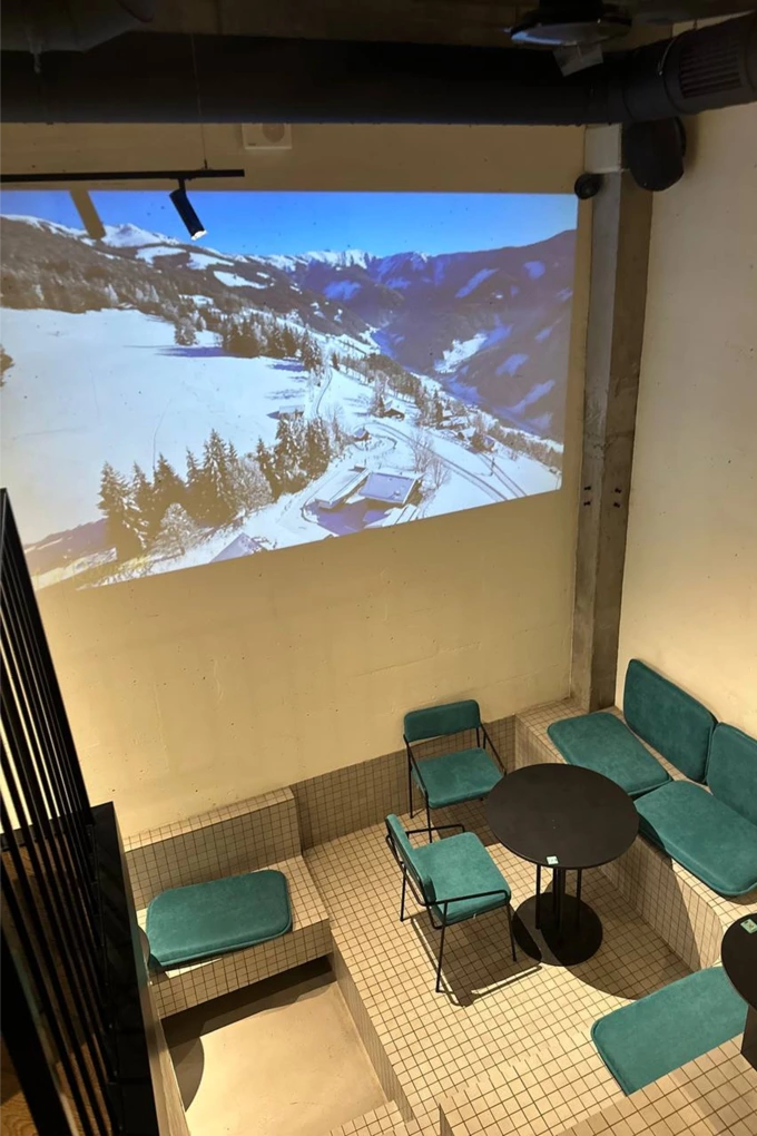 У кав’ярні приблизно 20 посадкових місць. Частину посадки зробили у форматі «амфітеатру». У просторі є проєктор і м’які крісла для відпочинку. Стіни залишили з відкритою вінтажною цеглою.